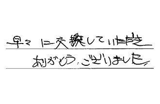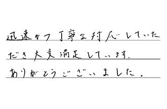 迅速かつ丁寧な対応をしていただき、大変満足しています。ありがとうございました。
