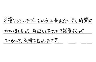 見積りしていただいてから工事までに少し時間はかかりましたが、対応して下さった職員さんがていねいで、気持ち良かったです。