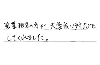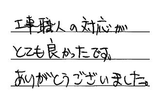 お店の方も工事の方も丁寧で、とても好感が持てました。また次回もなにかありましたら、是非お願いしたいと思っています。ありがとうございました。