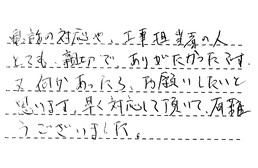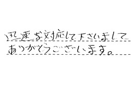 電話の対応や、工事担当者の人、とても親切でありがたかったです。又何かあったら、お願いしたいと思います。早く対応して頂いて、有難うございました。