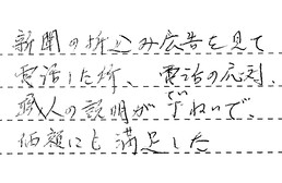 新聞の折込み広告を見て電話した所、電話の応対、職人の説明が丁ねいで、価格にも満足した。