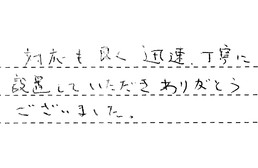 対応も良く、迅速、丁寧に設置していただき、ありがとうございました。
