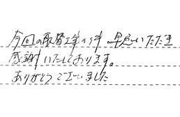 今回の取替工事の件、早急いただき、感謝いたしております。ありがとうございました。