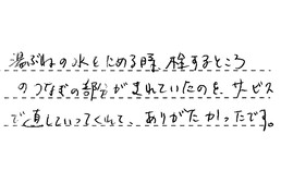 湯ぶねの水をためる時、栓するところのつなぎの部分がきれていたのを、サービスで直していってくれて、ありがたかったです。