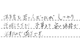 担当者も若い人だったが、しっかり説明して下さり、予算より安い価格で出来たので、満足です。