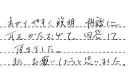 わかりやすく説明、相談に耳をかたむけて、回答して頂きました。また、お願いしようと思いました。