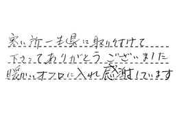 寒い所一生懸命に取り付けて下さって、ありがとうございました。暖かいオフロに入れ、感謝しています。