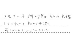 リモコン不調の際は、すぐに出張していただき、助かりました。ありがとうございました。