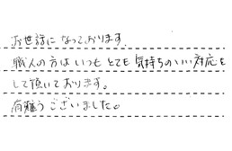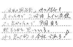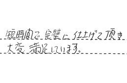 お世話になっております。職人の方は、いつもとても気持ちのいい対応をして頂いております。有難うございました。
