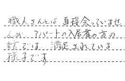 職人さんとは直接会っていませんが、アパートの入居者の方の話では、満足されている様子です。