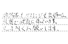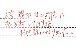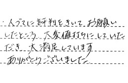 人づてに評判をきいて、お願いしたところ、大変値打ちにしていただき、大満足しています。ありがとうございました。