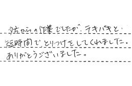 夕方からの作業でしたが、テキパキと短時間でとりつけをしてくれました。ありがとうございました。