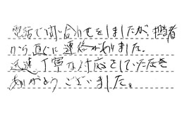 電話で問い合わせをしましたが、担当者から直ぐ連絡がありました。迅速、丁寧な対応をしていただき、ありがとうございました。
