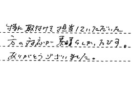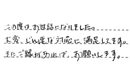 この度はお世話になりました。大変じん速な対応に、満足してます。またご縁があれば、お願いします。
