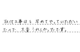 取付工事日を早めてやっていただいたので、大変うれしかったです。