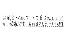 お風呂が直って、とてもうれしいです。快適です。ありがとうございます。