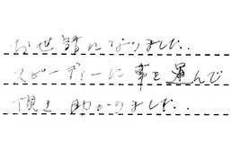 お世話になりました。スピーディーに事を運んで頂き、助かりました。