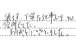 親切、丁寧な仕事ぶり、そして説明でした。ありがとうございました。