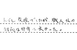 トイレ交換でしたが、職人さんの対応は非常に良かった。