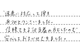 迅速に対応して頂き、ありがとうございました。信頼できる担当者の方でしたので、安心しておまかせできました。