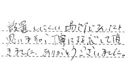 設置しにくい場所であったと思いますが、丁寧に対応して頂きました。ありがとうございました。
