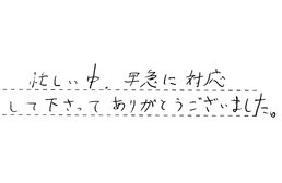 ネットでの依頼で不安でしたが、安さに満足いたしました。担当の光安さん、良くしていただきました。ありがとうございました。
