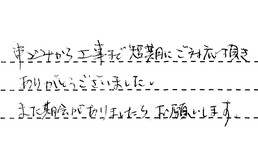 申込みから工事まで、短期にご対応頂き、ありがとうございました。また機会がありましたら、お願いします。
