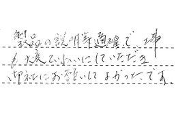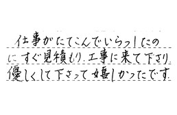 仕事がたてこんでいらしたのに、すぐ見積もり、工事に来て下さり、優しくして下さって、嬉しかったです。