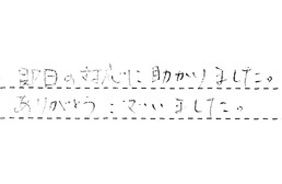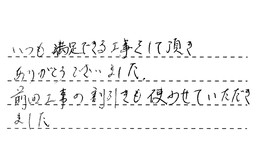 いつも満足できる工事をして頂き、ありがとうございました。前回工事の割引きも使わせていただきました。