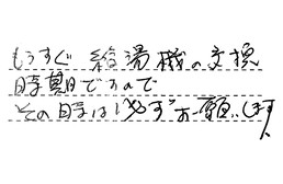 もうすぐ給湯器の交換時期ですので、その時は必ずお願いします。