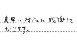 いつも素早い対応で、とても助かります。今後もまた、よろしくお願いします。
