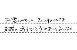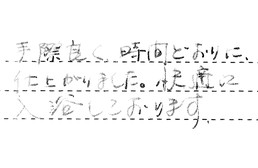 とても親切に説明していただき、年配の者にもよく理解できました。お仕事もていねいに、ありがとうございました。今後ともよろしくお願いします。