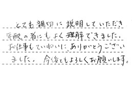 説明もよくして頂き、安心してお願いできました。ありがとうございました。