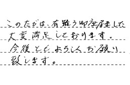 このたびは、有難う御座居ました。大変満足しております。今後ともよろしくお願い致します。