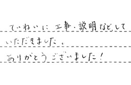 ていねいに工事・説明などしていただきました。ありがとうございました。