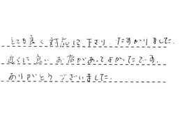 とても良く対応して下さり、たすかりました。近くに良いお店があってよかったです。ありがとうございました。