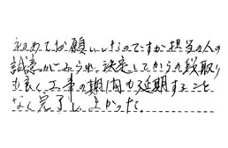 初めてお願いしたのですが、担当の人の誠意がみられ、決定してからの段取りも良く、工事の期間も延期することなく完了し、よかった。