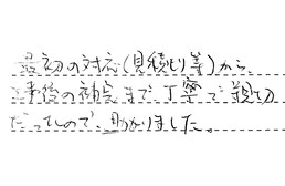 最初の対応(見積もり等)から、工事後の補完まで、丁寧で親切だったので、助かりました。