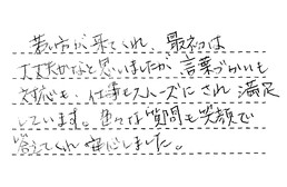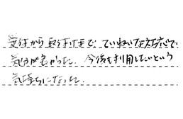 若い方が来てくれ、最初は大丈夫かなと思いましたが、言葉づかいも対応も仕事もスムーズにされ、満足しています。色々な質問も笑顔で答えてくれ、安心しました。