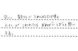 安いし親切で、うれしかったです。トイレがこわれたら、おねがいしようと思います。
