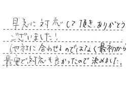 早急に対応して頂き、ありがとうございました。他社に合わせるのではなく、最初から最安で、対応も良かったので決めました。