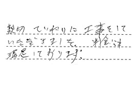 親切ていねいに工事をしていただきました。料金には満足しております。