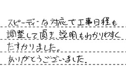スピーディな対応で、工事日程も調整して頂き、説明もわかりやすく、たすかりました。ありがとうございました。