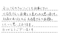 安江さんのきびきびした仕事ぶりに、大問屋さんに依頼して良かったと思いました。また何かありましたら、大問屋さんにお願いしたいと思っております。ありがとうございました。
