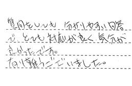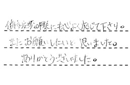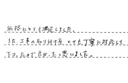 値段交渉の際にも、快く応じて下さり、またお願いしたいと思いました。ありがとうございました。