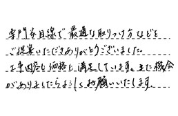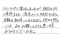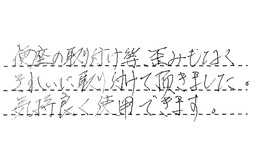 チラシをみて電話しましたが、対応もよく、工事終了まで満足のいく対応でした。金額も納得いくものでした。何かの折には、またお願いしようと思います。ありがとうございました。