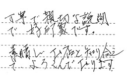 丁寧で親切な説明で、好印象です。素晴しいお店と知り合えて、よろこんでおります。