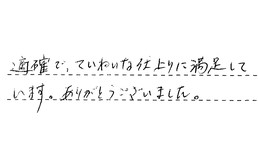 適確でていねいな仕上りに満足しています。ありがとうございました。