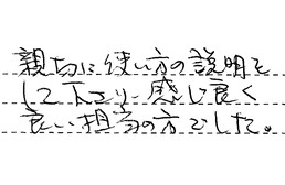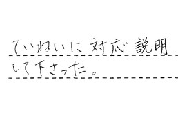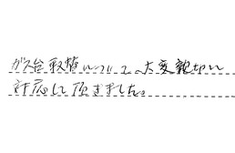 電話問合わせ後、取替工事まで迅速に対応していただきました。また、施工・説明共にとてもていねいでした。ありがとうございました。