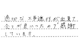適切な工事進行が出来て、全てが良かったので、感謝しています。